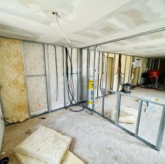Sinon entre temps on a commencé à équiper la salle de sport, même si le plafond est trop bas on va trouver une solution :) on a eu une grosse livraison de placo aussi ... les gars se sont tapé 70 plaques à monter ... mais bon, ils sont musclés, les deux, là! Apparemment ce n'était pas très drôle... ce que je comprends.